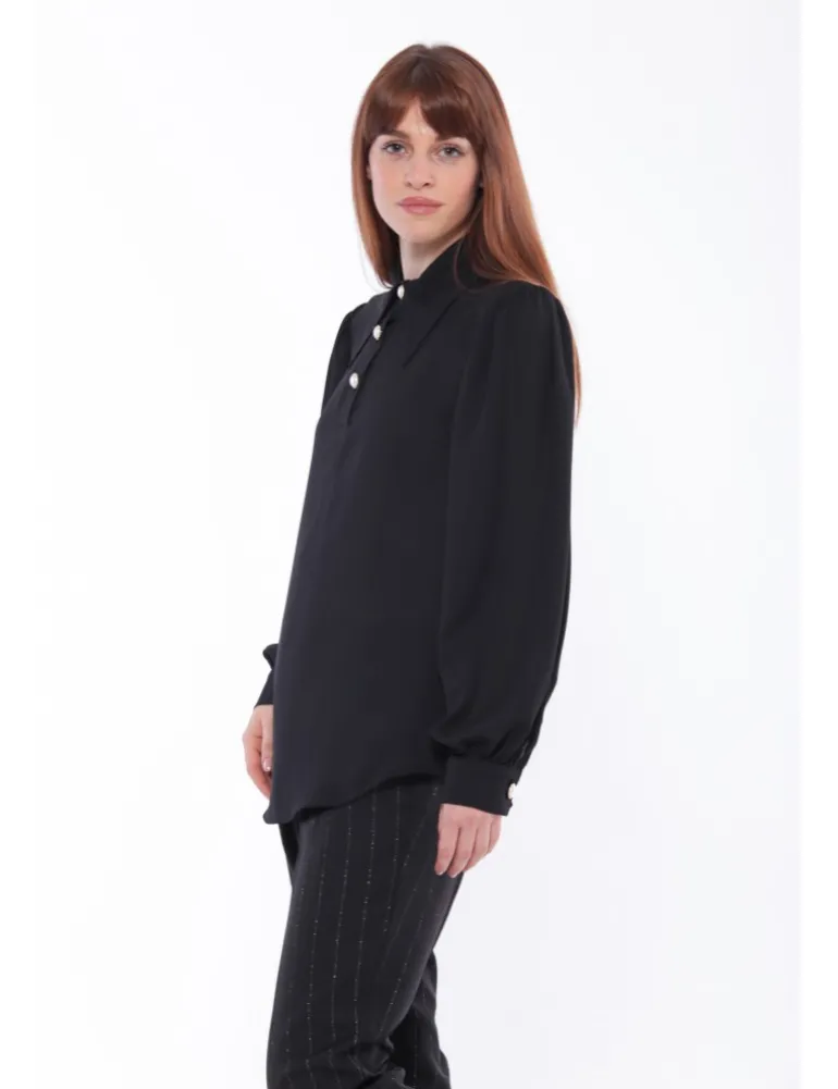Blusa con dettaglio di bottoni a perla. Adatta a qualsiasi stile e appositamente realizzata per risultare voluminosa.