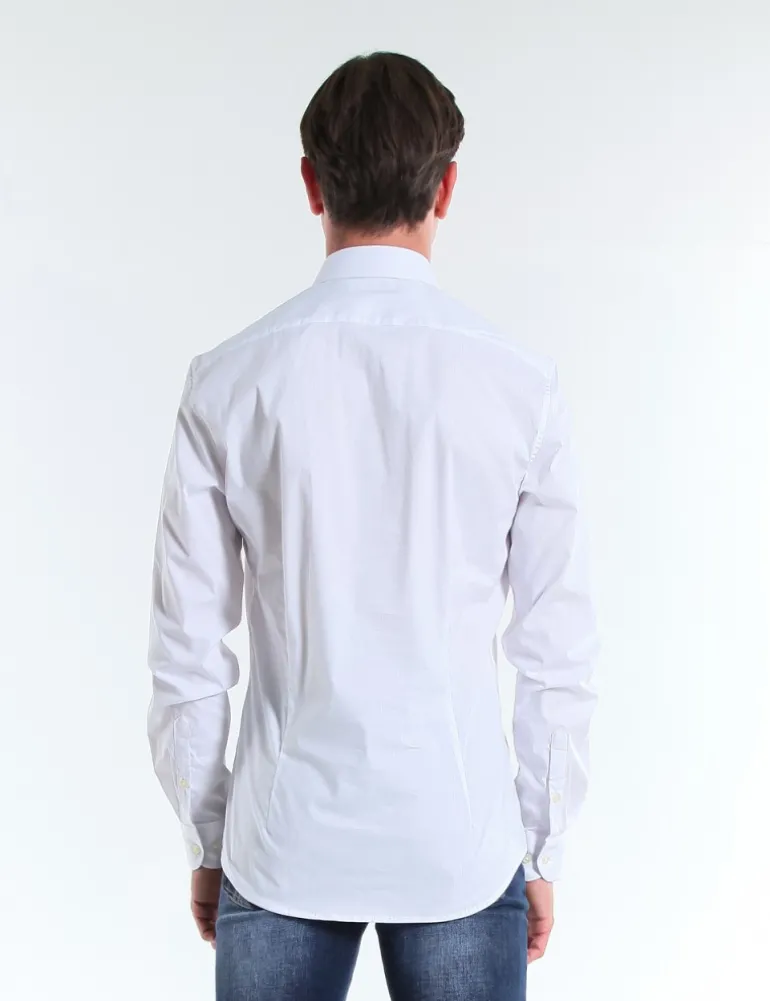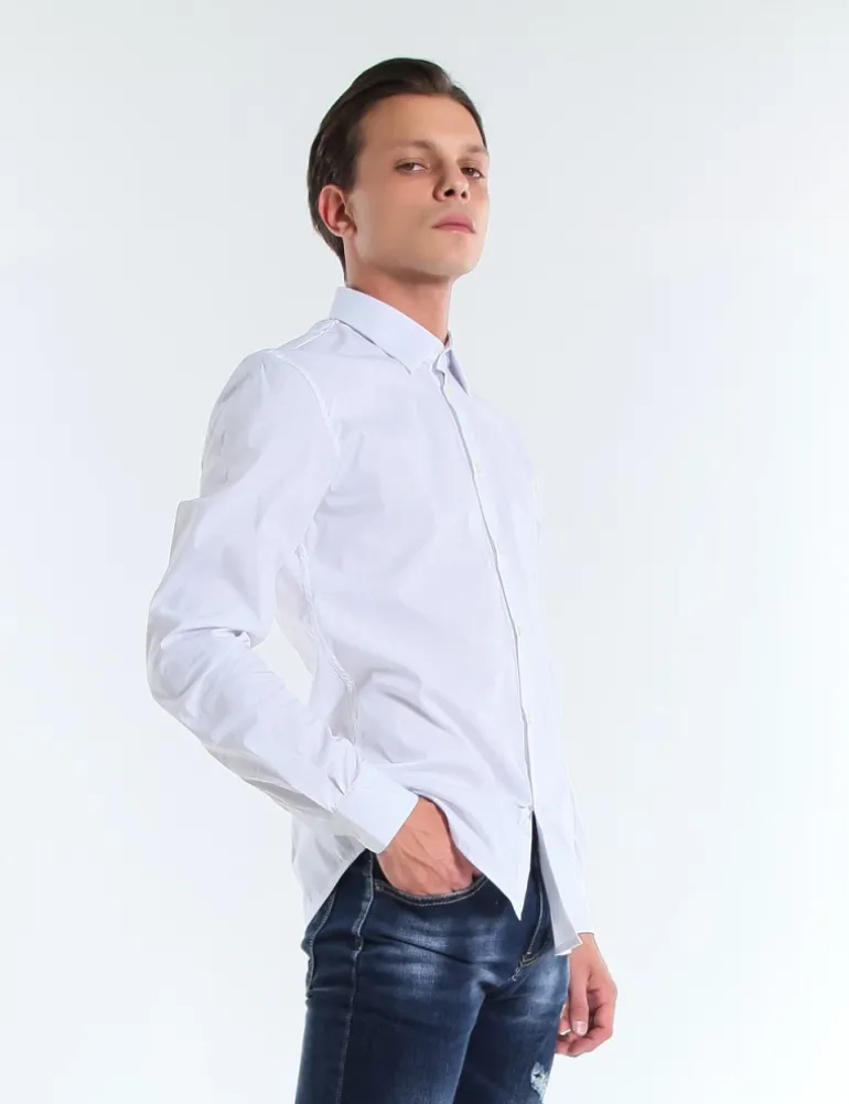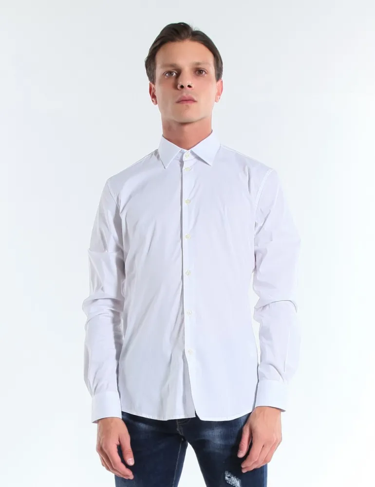 CAMICIA COLORE BIANCO, VESTIBILITA’ REGOLARE, COLLETTO CLASSICO E ABBOTTONATURA CLASSICA CON BOTTONI. POLSINO CLASSICO CON BOTTONE.
