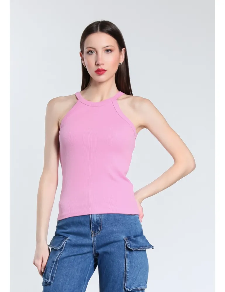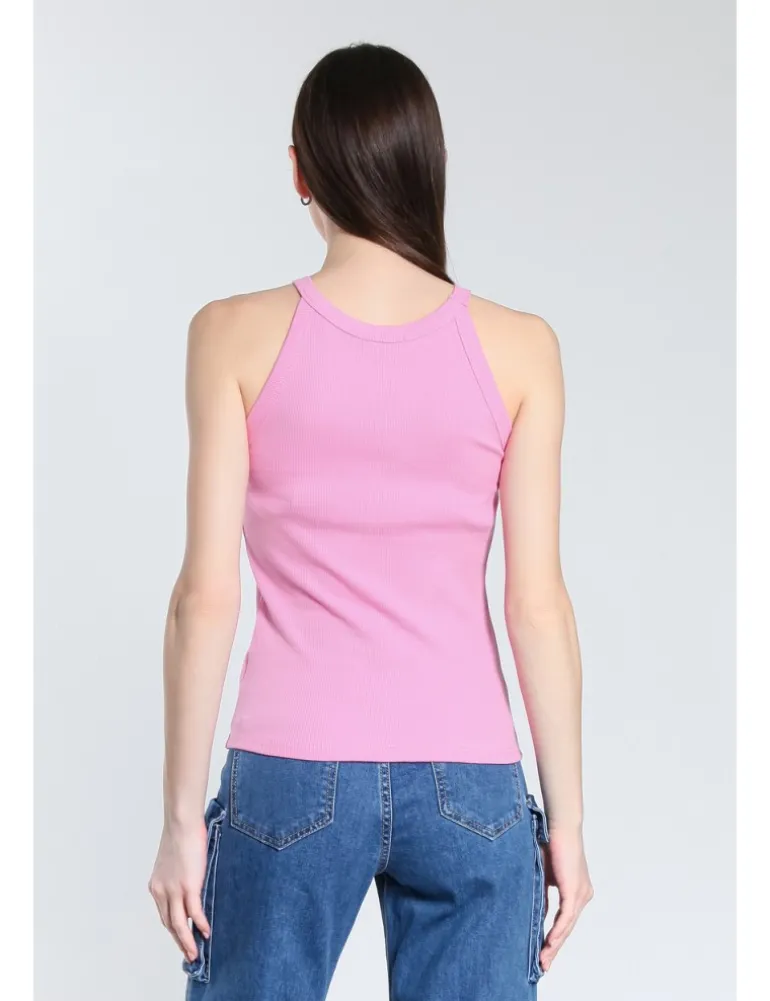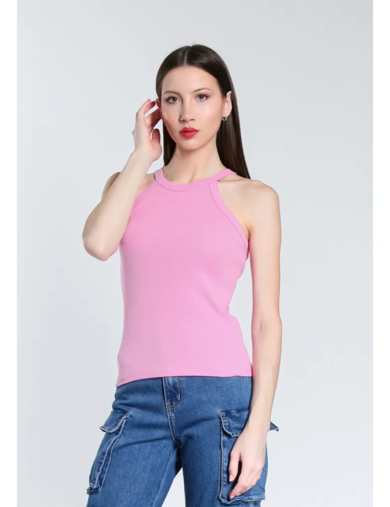 CANOTTA ANDIE ADERENTE CON SPALLINE SOTTILI. JERSEY DI COTONE A COSTINE E SCOLLO ROTONDO