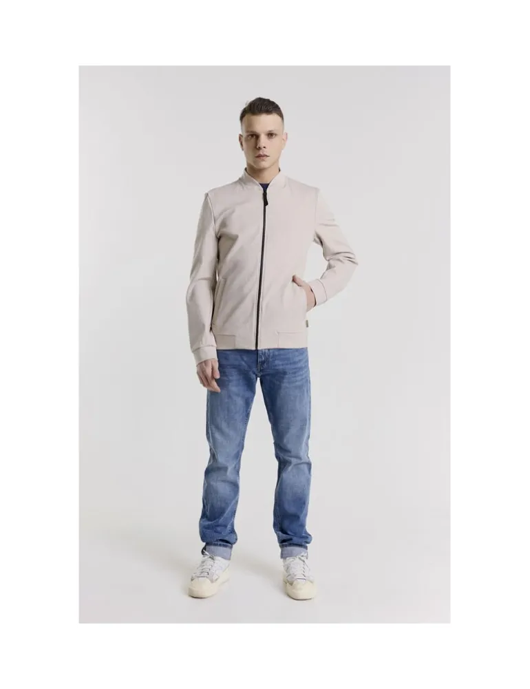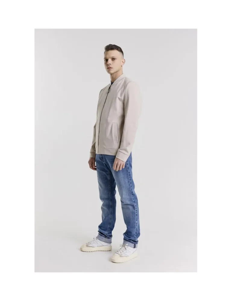 FELPA BOMBER CON ZIP FRONTALE E TASCHE SUI FIANCHI IN TESSUTO PUNTO MILANO.