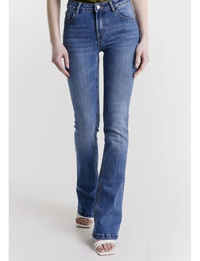 JEANS MONICA LAVAGGIO MEDIUM USED, CINQUE TASCHE, PUSH UP, MODELLO BOOTCUT, VITA MEDIA, CHIUSURA FRONTALE CON ZIP E BOTTONE, IN COMODO TESSUTO DENIM ELASTICIZZATO.
