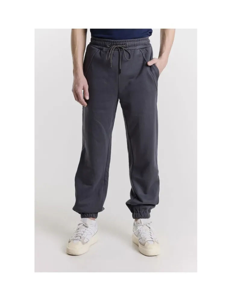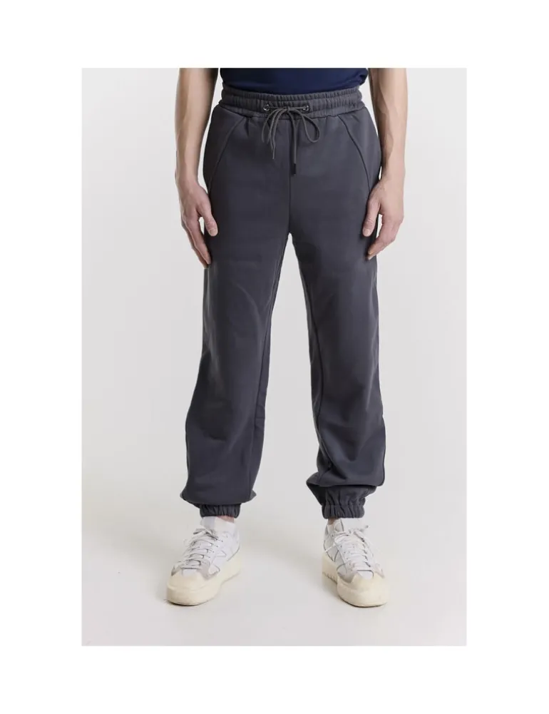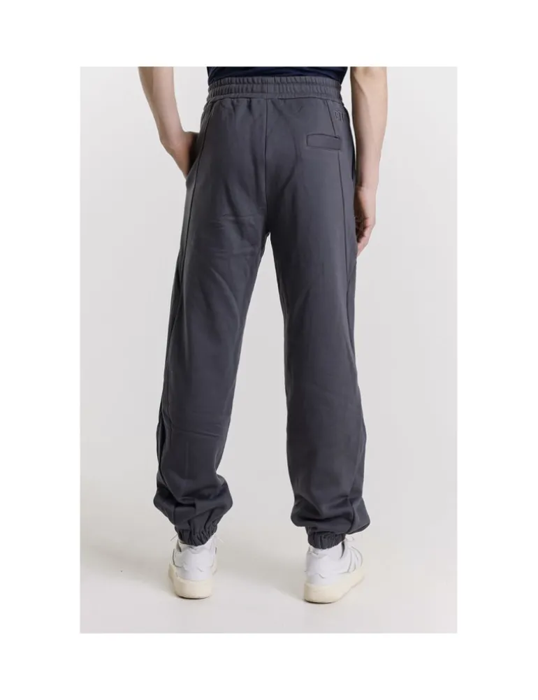 PANTS JOGGER MEYS COLORE GRAFITE IN COTONE, GARZATA, VITA ELASTICA CON COULISSE TASCHE VERTICALI SUI FIANCHI, ELASTICO SUL FONDO. TASCA SINGOLA POSTERIORE A FILETTO E RICAMO LOGO IN TONO.