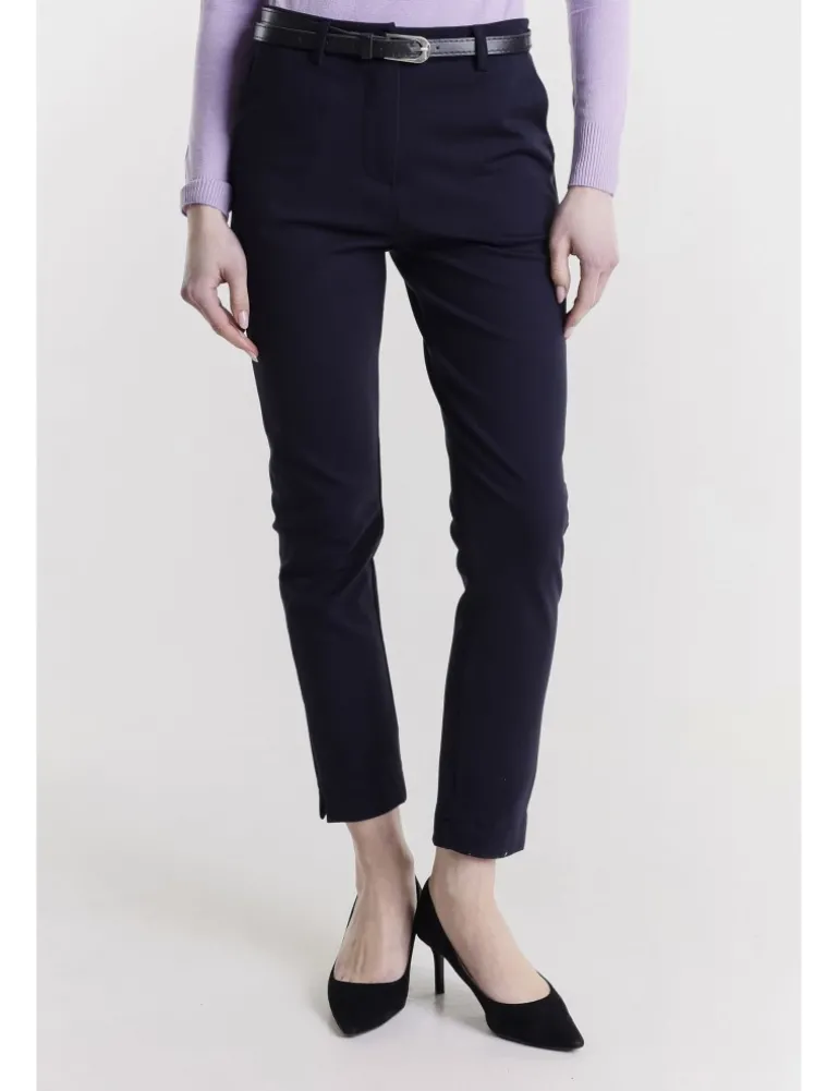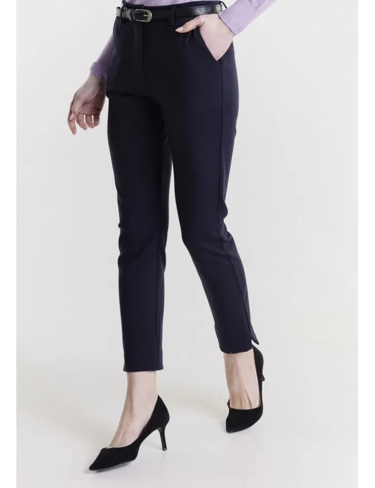 PANT MIVIE SLIM IN PUNTO MILANO COLORE MORO ,TASCHE SAGOMATE SU FIANCO, TASCHE A FILETTO POSTERIORI , DETTAGLIO SPACCO LATERALE SU FONDO GAMBA , CHIUSURA CON ZIP E BOTTONE , CINTURA IN PU.