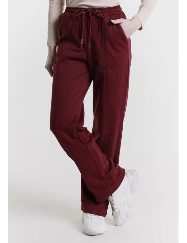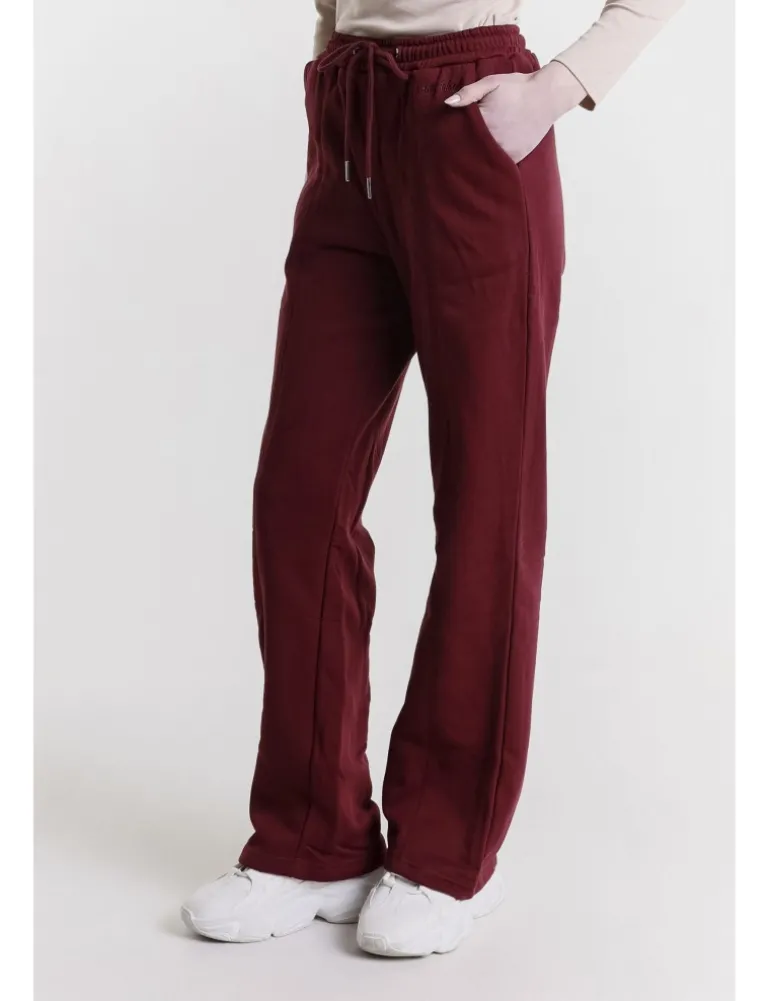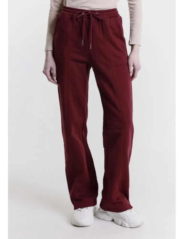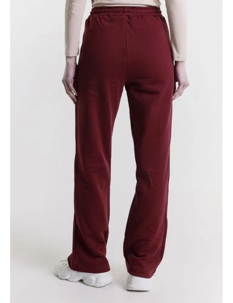 PANTS JOGGER MUNE COLORE WINE, MORBIDO TESSUTO GARZATO, ELASTICO IN VITA, TAGLIO VERTICARE CON RIBATTITURA SUL CENTRO DAVANTI, GAMBA DRITTA, RICAMO IN TONO SUL FIANCO.
