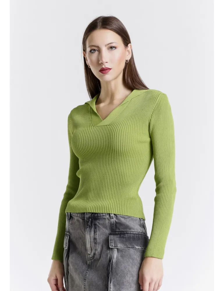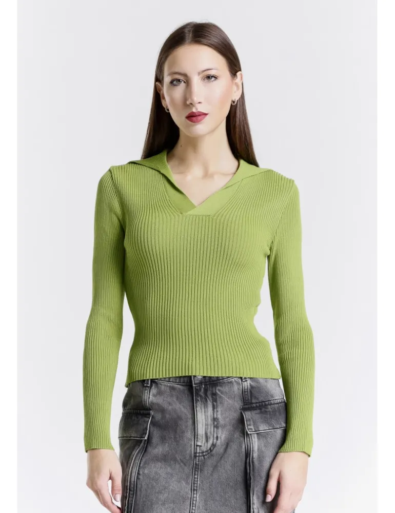 Pull con collo a polo senza bottoncini, vestibilità regolare e maniche lunghe.