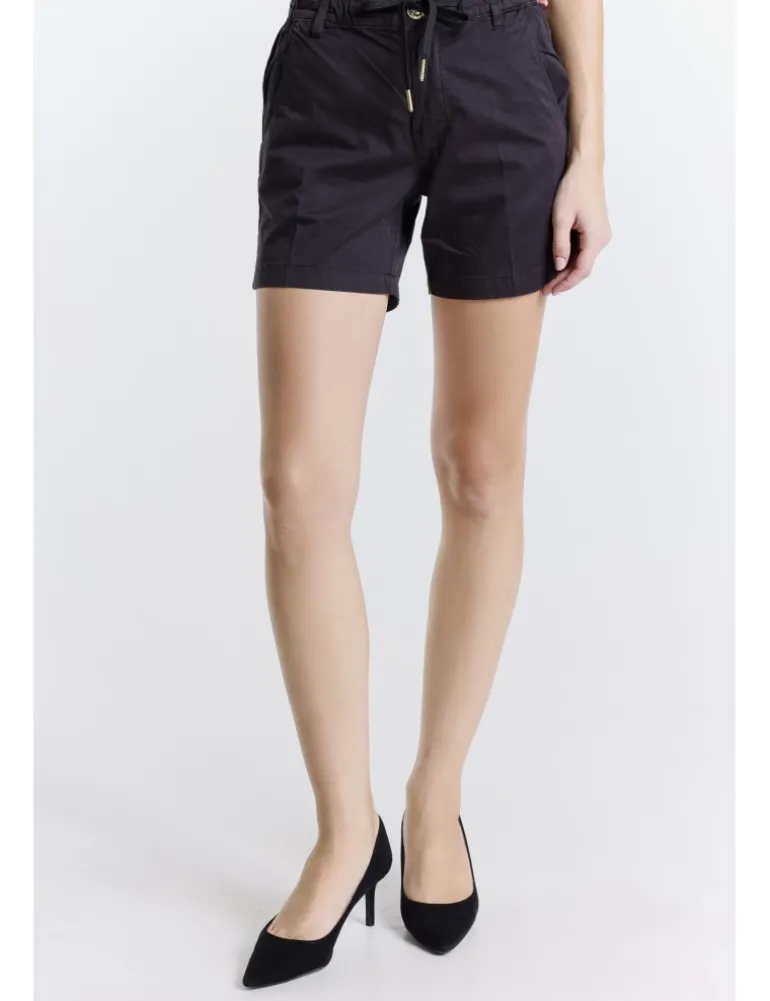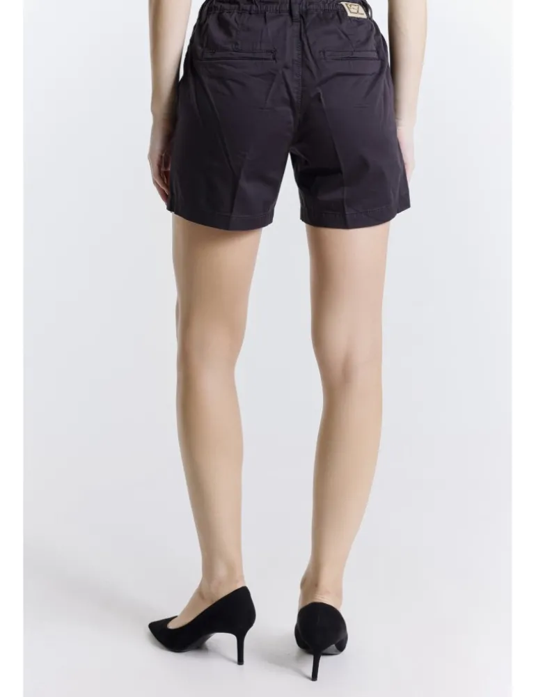Shorts Yes Zee modello P224 in morbida gabardina di cotone stretch di colore nero. Dettaglio con cintura elastica regolabile tramite coulisse.