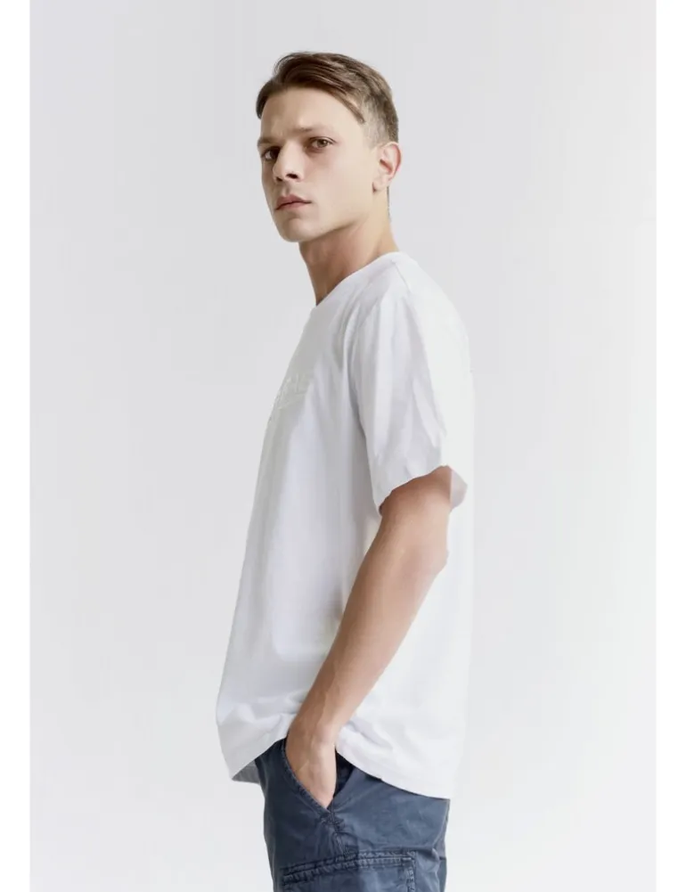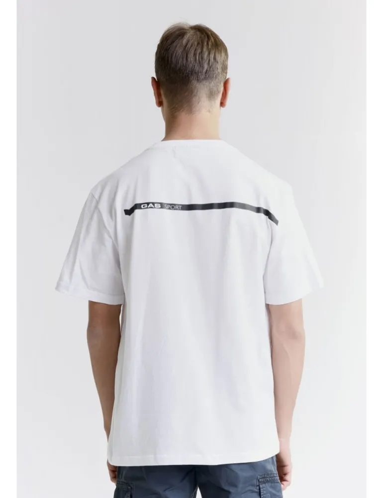 T-shirt Gas, capsule collection GAS SPORT x Pramac, in morbido cotone oclore bianco. La stampa sul petto e sulla schiena aggiungono un tocco distintivo, perfetto per un look casual e sportivo.