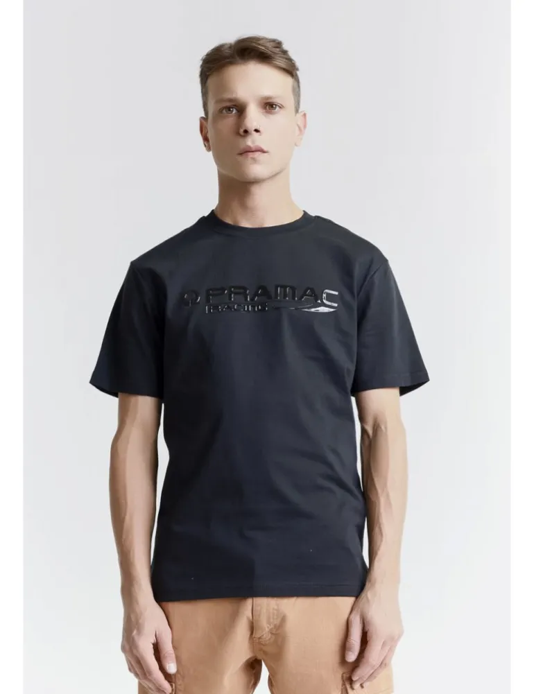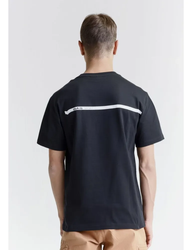 T-shirt Gas a maniche corte, capsule collection GAS SPORT x Pramac, in morbido cotone colore nero. La stampa sul petto e sulla schiena aggiungono un tocco distintivo, perfetto per un look casual e sportivo.
