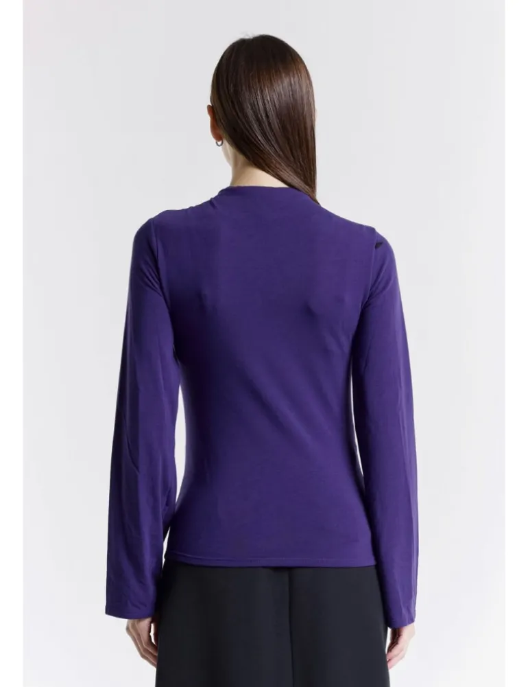T-shirt modello tati a manica lunga, in morbido tessuto colore viola. Vestibilità regolare, manica con fondo a campana e scollo a lupetto.